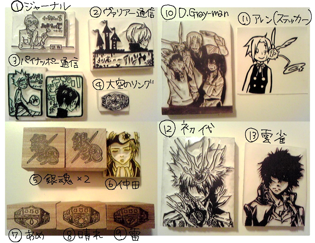11、アレン(ステッカー) 12、初代 13、雲雀